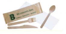 Sachet comprenant 1 couteau, une fourchette, une petite cuillère, une serviette
